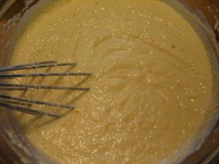 Whisk the 6 eggs in a mixing bowl until homogenous. Add the sugar and with an electric hand mixer blend for a few minutes till it combined well.
