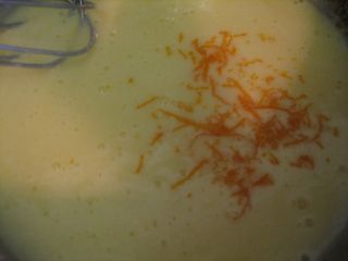 Add the orange juice reduction & the rind to the thickened sauce. Keep whisking on very low heat till the desired consistency is reached. Once again, do not boil.