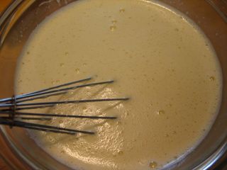 Whisk the cream & milk combination a little at a time into the eggs to temper the eggs and then finally add it all in. Whisk until thoroughly combined.