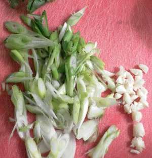 Green onions - Cut and discard the roots. Thinly slice the onions and the light green portions into diagonals. Do not include the leaves.