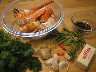 Because the version right here is a quick fix version, kid-and-adult-friendliesh not using the whole traditional mud crabs but rather king crab legs easily available in US supermarkets.